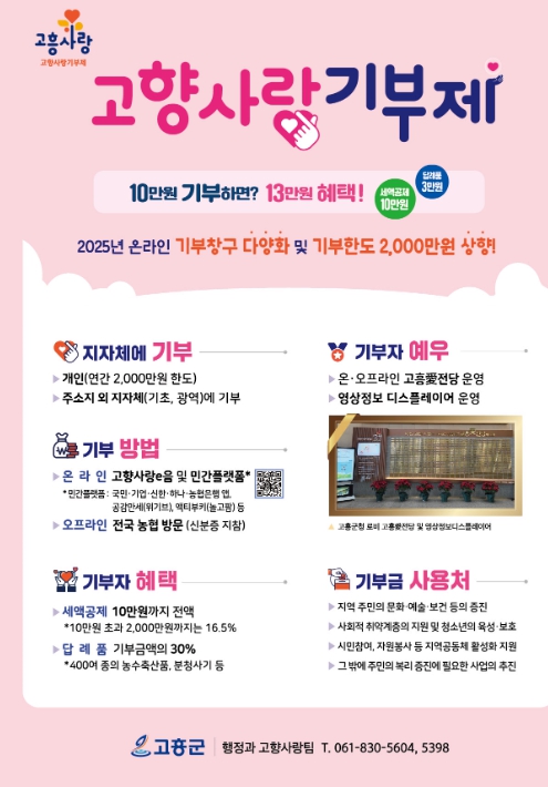 또한, 온오프라인 고흥애(愛) 전당, 영상정보 디스플레이어 등 예우 시책을 통해 기부자 효능감 제고에 최선을 다하고 있다.