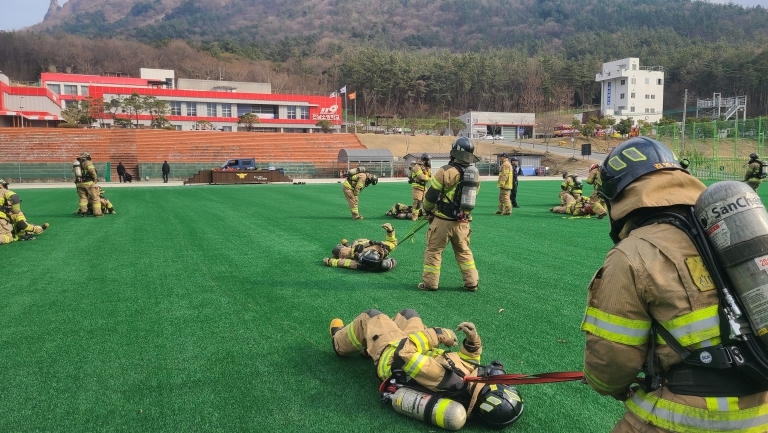 주요 훈련은 ▲생존 및 비상탈출 ▲광범위 지역 로프수색 ▲RIT 시나리오 종합훈련 등 소방대원 자가탈출 및 동료 구출훈련에 중점을 뒀다.