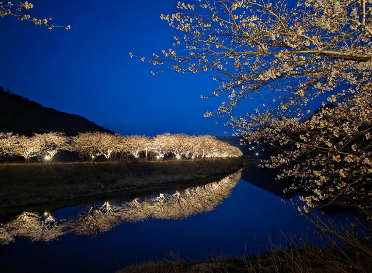 용산면 남상천 벚꽃길은 매년 봄이 되면 많은 사람들이 찾는 벚꽃 명소 중 하나다.