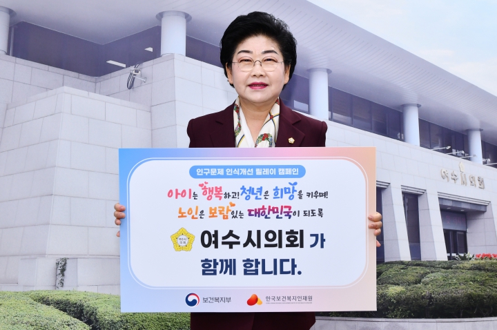백 의장은 “아이는 행복하고, 청년은 희망을 키우며, 노인은 보람 있는 대한민국이 되도록 여수시의회가 함께하겠다”는 메시지를 전하며 캠페인에 동참했다.