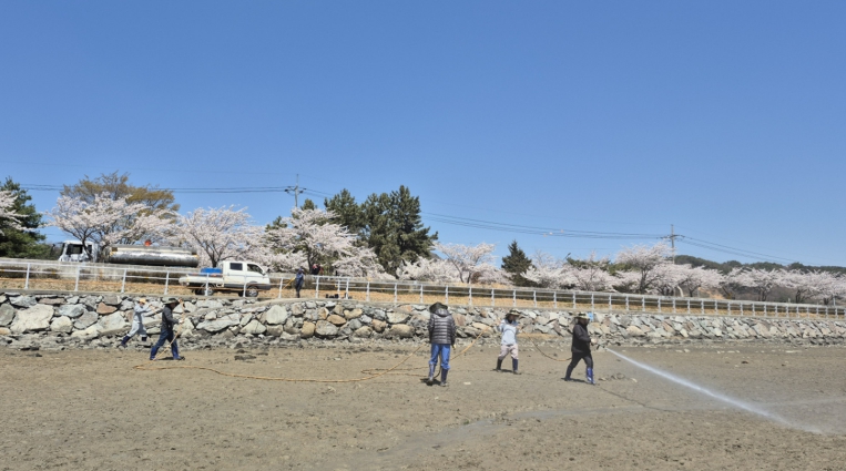 식물의 생명력 유지를 위한 급수 작업이 시급한 상황에서 진월면(문순용 면장), 이장협의회(이기춘 협의회장), 주민자치위원회(박충래 위원장), 청년회(황성현 회장) 소속 10여 명은 이날 갯벌에 들어가 호스를 이용해 물을 공급하며 염생식물의 성장을 도왔다.