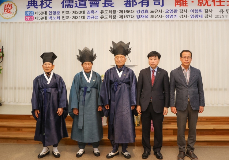 이번 이․취임식을 통해 제58대 안영춘 전교, 제30대 김옥기 유도회장, 제166대 강경휴 도유사가 이임하고, 제59대 박노회 전교, 제31대 염규선 유도회장, 제167대 양재석 도유사가 새롭게 취임했다.