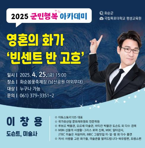 조미화 인구청년정책과장은 “이번 강연은 2025 화순 봄꽃 축제와 함께 진행되어, 지역 주민들에게 문화적 풍요로움을 제공하는 중요한 기회가 될 것”이라며, “이창용 강사의 깊이 있는 지식과 경험을 바탕으로, 문화재와 미술관에 대한 새로운 시각을 공유하고, 군민들이 문화와 예술에 대해 더 많은 관심을 가질 수 있는 계기가 되기를 바란다”라고 말했다.