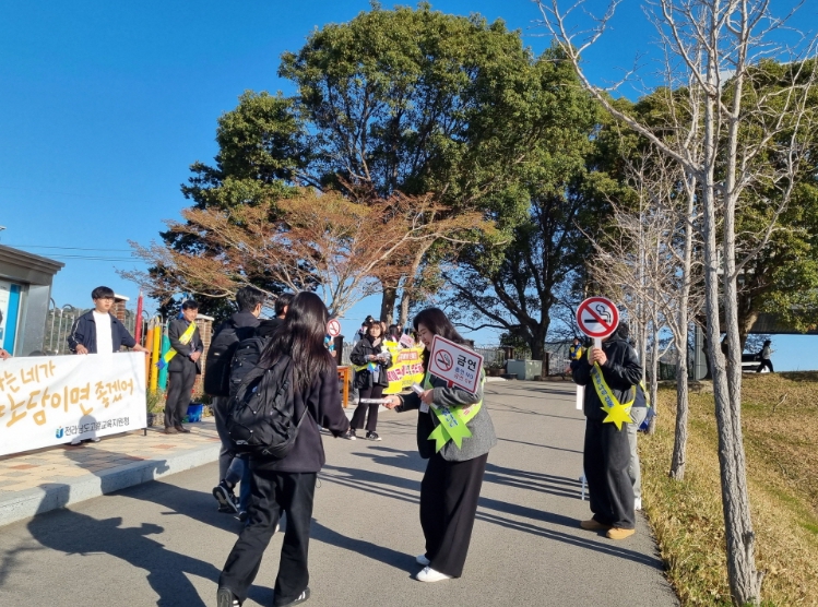 이번 캠페인은 청소년기의 흡연과 비만이 성인기 건강에 미치는 부정적인 영향을 알려, 흡연을 예방하기 위해 마련됐으며, ‘우리는 담배 피우지 않는 멤버스’라는 슬로건으로 현수막과 어깨띠를 활용해 메시지를 전달하고, 광고지(리플릿) 등 홍보 물품을 배부해 학생들의 자발적인 참여를 유도했다.