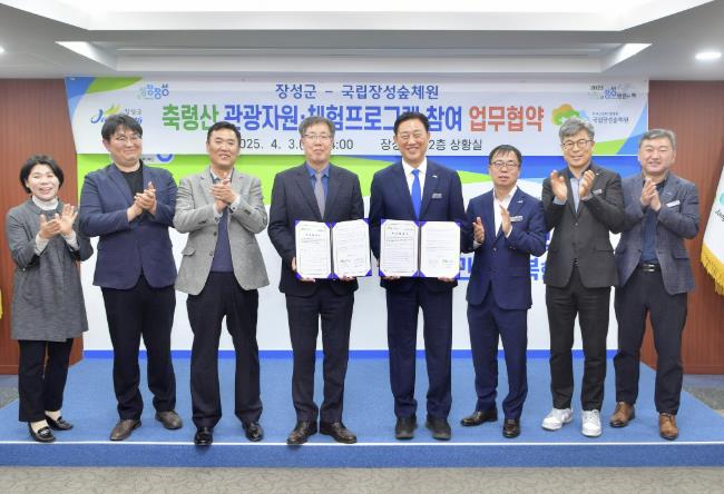 주요 내용은 △관광자원 연계사업 추진 △산림자원 활용 산림복지서비스 지원 △기타 사업에 필요한 교육‧홍보활동 등이다. 협약을 통해 방장산 국립장성숲체원의 다양한 체험 프로그램을 축령산에서도 펼칠 수 있게 됐다.