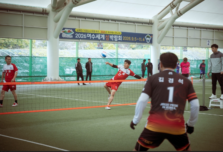 진남체육공원 족구전용구장에서 진행된 이번 대회는 생활체육 활성화와 2026여수세계섬박람회 홍보를 위해 마련된 것으로, 선수들은 그간 갈고닦은 실력을 유감없이 발휘했다.