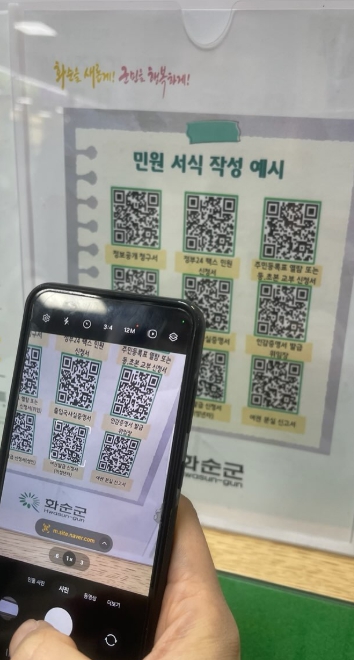 이에 군에서는 민원실 내 어디서나 쉽고 빠르게 민원 서식을 작성할 수 있도록 스마트폰 카메라로 앱을 스캔하면 민원서식 작성 예시 견본 이미지로 연결되는 QR코드를 제작해 누리집과 군청 및 13개 읍면 행정복지센터에 게시했다.