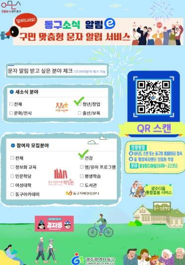 서비스 신청은 거주지 각 동 행정복지센터 방문 또는 동구청 누리집 접속을 통해 간편하게 가능하며 신청 이후에는 관심 분야에 대한 관련 소식을 문자로 빠르게 받아볼 수 있다.