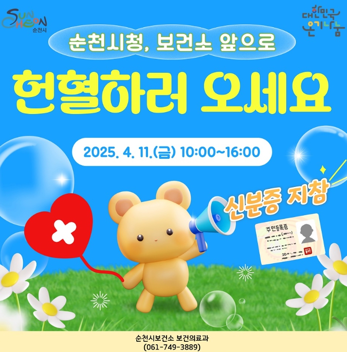 헌혈 관련 문의는 순천시 보건의료과로 문의하면 된다.