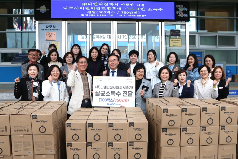 윤병태 나주시장은 “아이들의 건강한 성장을 위해 정성을 나눠주신 ㈜디엔디전자에 깊이 감사드린다”며 “이번 기탁이 안전하고 청결한 보육환경을 조성하는 데 큰 도움이 될 것”이라고 말했다.