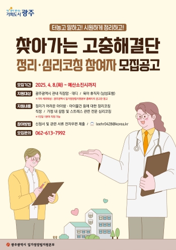 신청은 이메일로 접수받으며, 예산 소진 때까지 가능하다. 자세한 내용은 광주시 일가정양립지원본부 누리집 공지사항에서 확인할 수 있다.