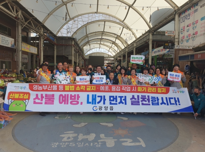 권회상 광양읍장은 “최근 건조한 날씨와 강풍이 지속되고 있어 작은 부주의로도 산불이 발생할 수 있는 만큼, 주민 한분 한분의 관심과 실천이 중요하다”며, “앞으로도 다양한 홍보 활동과 예방 조치를 통해 산불 예방에 최선을 다하겠다”고 말했다.