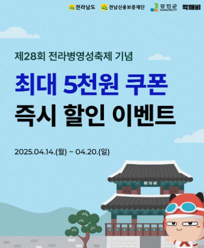 전라남도 할인이벤트와 강진군에서 추진하는 ‘강진군에서는 누구나 주말 3천 원 할인이벤트’, ‘전라병영성축제 기념 할인이벤트’ 등 이벤트 할인쿠폰은 최대 3개까지 중복 사용이 가능하니, 강진군 공공배달앱 먹깨비 소비자로서 받을 수 있는 혜택은 타 지자체나 민간 배달앱에 비할 수 없다.