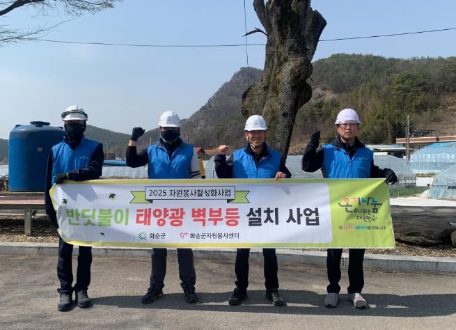 이번 봉사활동은 가로등이 없는 어두운 골목길에 친환경 태양광 벽부등 설치를 화순군자원봉사센터가 주관하는 자원봉사 활성화 사업으로, 사전에 읍면의 신청을 받아 선정된 4개 읍면 6개 마을을 대상으로 4월부터 10월까지 120개를 설치할 예정이다.