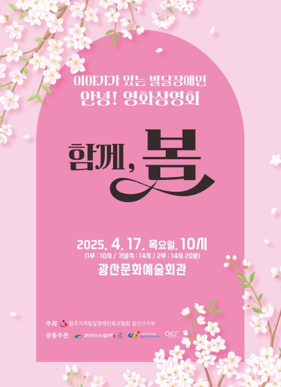 광산구 관계자는 “‘함께 봄’ 영화 상영회는 발달장애인 안녕! 영화제가 걸어온 길과 성과를 되짚은 뜻깊은 자리가 될 것”이라며 “장애인과 비장애인이 함께 즐기는 영화 축제로 나아가는 한 걸음이 되도록 많은 시민의 관심과 참여를 바란다”고 말했다.
