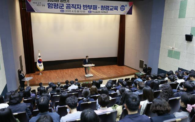 함평군은 15일 “2025년 상반기 반부패‧청렴 교육이 이날 오전 함평엑스포공원 주제영상관에서 군청 소속 공직자 300여 명이 참석한 가운데 진행됐다”고 밝혔다.