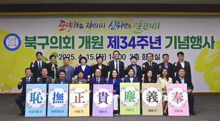 최무송 의장은 “귀한 시간을 내어 참석해 주신 구민과 귀빈 여러분 덕에 기념식이 더욱 뜻깊은 자리가 됐으며, 행사 개최에 힘써준 동료 의원들과 직원들께도 감사드린다”며 “앞으로도 북구의회는 청렴한 자세와 소통의 마음가짐으로 구민과 함께 하겠다"고 다짐했다.