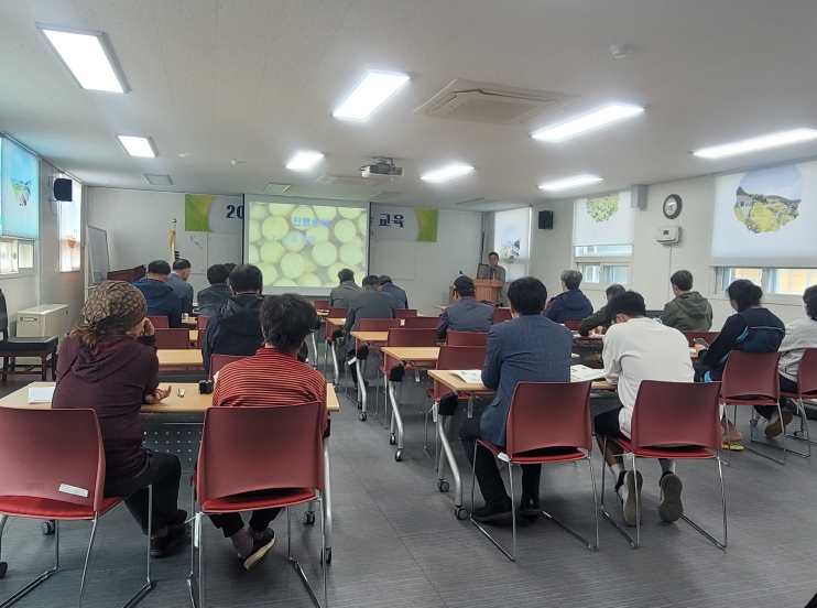 이번 교육은 논 콩 생산단지의 경쟁력 향상과 기술 역량 강화를 위해 마련됐고, 논 콩 생산량을 높이기 위한 병해충 방제 교육, 논 배수 관리에 대한 사례발표 및 질의응답 등으로 구성됐다.