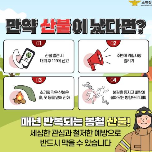 여수소방서장은“건조한 봄철에는 작은 불씨가 바람을 타고 빠르게 확산하여 큰 피해를 야기할 수 있다”라며“산불 발생 시 행동요령을 잘 숙지하시어 산불로부터 안전한 여수가 되기를 바란다”라고 전했다.