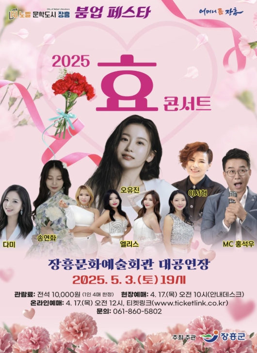 장흥군관계자는 “군민들의 흥과 사랑까지 나눌 수 있는 이번 효 콘서트에 많이 오셔서 효의 의미를 되새김은 물론, 가족과 함께 소중한 시간을 보내시길 바란다”고 말했다.