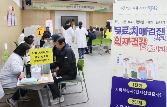 동구치매안심센터가 주관한 이번 검진은 지난 15일을 시작으로, 관내 8개소 노인 일자리 수행기관과 협력을 통해 일정별로 장소를 나눠 운영 중이다.