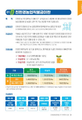 특히, 올해는 2025년 신규 친환경 인증 농가도 작물별 기준 기간 내 인증서를 제출하면 직불금을 받을 수 있다.