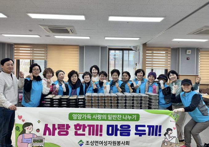 조성면 여성자원봉사회 김미숙 회장은 “작은 손길이지만 이웃을 향한 따뜻한 마음을 담아 만든 반찬을 통해 마음의 온기가 전해지길 바란다.”라며 “앞으로도 지속적인 나눔을 통해 지역사회에 따뜻한 울타리가 될 수 있도록 봉사를 이어가겠다.”라고 말했다.