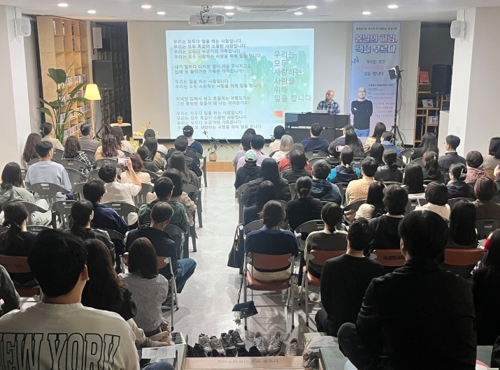 이번 행사는 ‘우리는 모두 사랑하는 사람을 위해 일을 합니다’를 주제로, 책과 음악이 어우러지는 감성적인 북콘서트로 기획됐다.