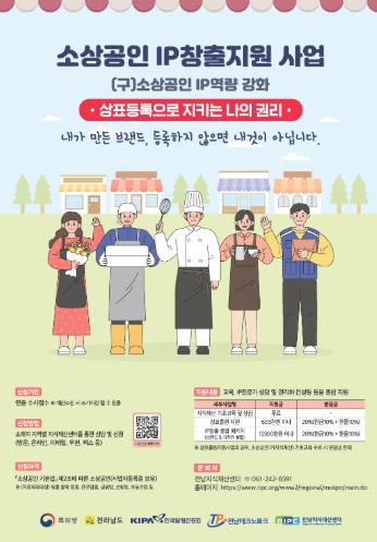지원을 바라는 소상공인은 전남테크노파크 누리집, 전남지식재산센터 누리집에서 상세 내용을 확인하고 신청하면 된다.