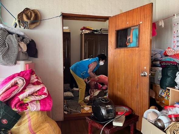 해당 가구는 집 안팎에 가재도구와 옷가지가 무질서하게 쌓여 위생 상태가 심각한 상황이었으며, 돌봄의 손길이 닿지 않아 생활 전반에 어려움을 겪던 중에 복지기동대 이웃의 제보로 복지 사각지대로 발굴됐다.