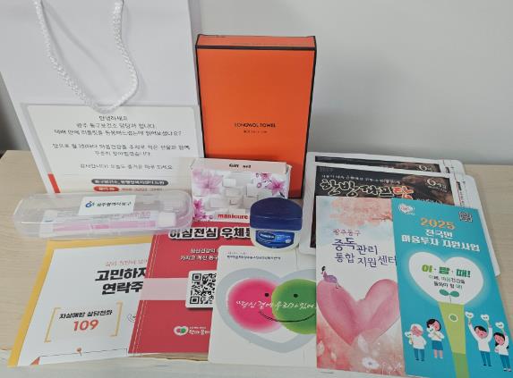 택배는 마음 돌봄을 위한 QR 자가 검진표, 도움 기관 정보, 정신·중독 센터 안내문과 생활 돌봄을 위한 생필품, 건강정보 등으로 구성됐다.