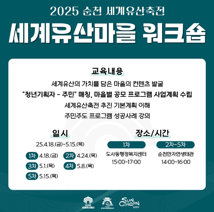 순천시 세계유산보존협의회 관계자는 “올해는 지역 주민이 적극 참여하는 세계유산축전을 만들고자 워크숍을 기획했다”며 “2025 순천 세계유산축전에 많은 기대와 관심 부탁드린다”고 말했다.