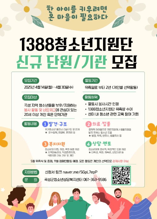 자세한 문의는 곡성군학교밖청소년지원센터로 할 수 있다.