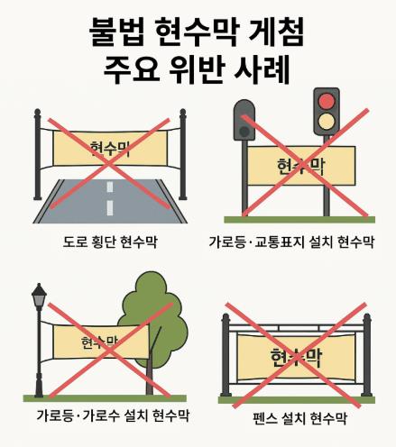 이 기간 동안에는 현수막 게시 기준에 대한 적극적인 안내 및 계고 중심의 점검 활동이 이뤄진다.