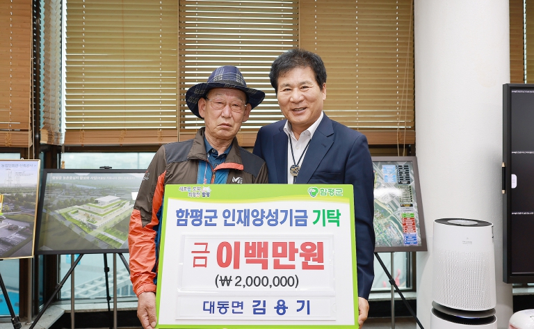 이상익 함평군수는 “지역사회에 선한 영향력이 되어 주셔서 감사하다”며 “기탁하신 기부금은 우리 군 인재들이 걱정 없이 학업에 전념할 수 있도록 소중히 활용하겠다”고 말했다.