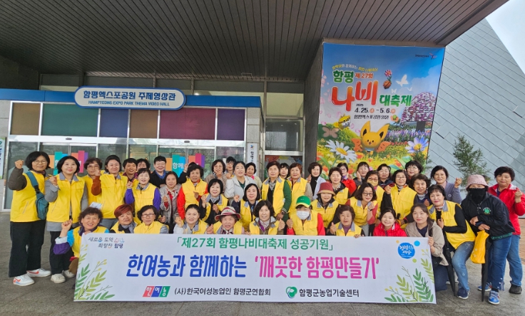 함평군은 23일 “(사)한국여성농업인 함평군연합회가 전날 엑스포공원 일대에서 환경 정화 활동과 축제 부스 준비에 참여하며 축제 분위기 조성에 힘을 보탰다”고 밝혔다.
