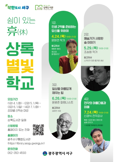 한미 도서관과장은 “상록별빛학교는 바쁜 일상 속에서도 주민들이 인문·예술 강연을 통해 삶의 여유를 찾을 수 있도록 마련된 쉼과 회복의 강좌”라며 “앞으로도 다양한 야간 문화 프로그램을 마련해 문화 향유 기회를 제공하겠다”고 말했다.