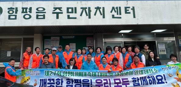 함평군은 23일 “함평읍 주민자치회원 30여 명과 읍사무소 전 직원 등 40여 명이 함께 지난 22일 함평읍 시가지 일대에서 환경정화 활동을 실시했다”고 밝혔다.