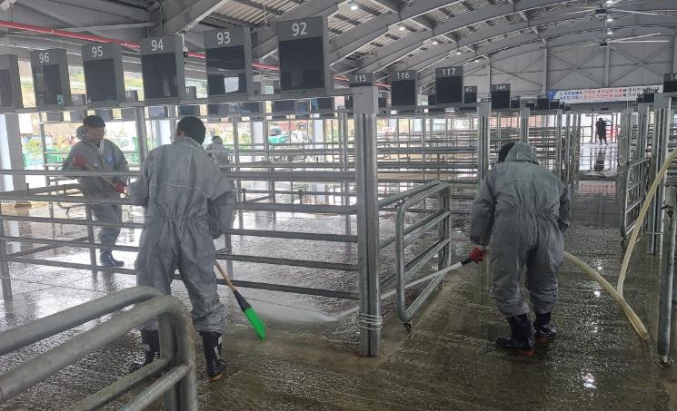 가축시장 입구에 수의사를 배치해 임상검사하고, 주요 출입구에 발판 소독조를 비치하며, 운영 종료 후 청소·세척·소독을 철저히 하도록 했다.