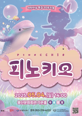 이번 공연은 어린이들에게 친숙한 명작 동화 ‘피노키오’를 새롭게 각색한 창작 뮤지컬로, 희망과 교훈을 담아내는 감동적인 메시지와 함께 창의력과 상상력을 자극하는 무대를 꾸며낼 예정이다. 어린이뿐만 아니라 온 가족이 함께 즐길 수 있는 문화콘텐츠로 기획됐으며, 전석 무료로 제공된다.