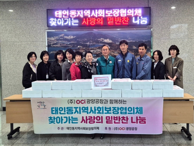이날 발대식에는 배록순 태인동장과 유성무 ㈜OCI 광양공장 공장장을 비롯해 협의체 위원, 노인맞춤돌봄 생활지원사 등 관계자들이 참석해 나눔 실천의 의미를 함께했다.
