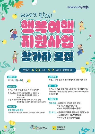이 사업은 관광 기회를 접하기 어려운 시민들에게 전남 주요 관광지를 둘러볼 기회를 제공하고, 여유와 쉼을 선사하기 위한 관광복지 프로그램으로, 전라남도와 순천시가 공동으로 추진한다.