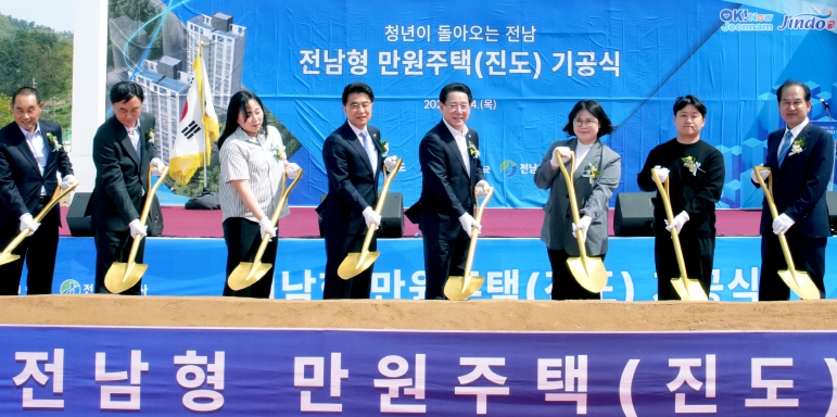 전남도는 24일 진도읍 남동리 전남형 만원주택 사업부지에서 김영록 전남도지사와 김태균 전남도의회 의장, 김희수 진도군수, 최명수 전남도의회 안전건설소방위원장, 진도 지역 청년·신혼부부 대표, 그리고 많은 진도군민 등 200여 명이 참석한 가운데 ‘전남형 만원주택’ 기공식을 열었다.