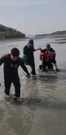 신고를 받고 현장에 도착해서 확인한 바, 구조대상자 1명이 갯벌에 고립 되어있는 상황이었으며, 자력 탈출이 가능하지 못한 상태 이어서 여수구조대는 신속히 보호장비 착용 후 구조대상자를 엎고 안전 구조한 다음 구급대에 인계했다.