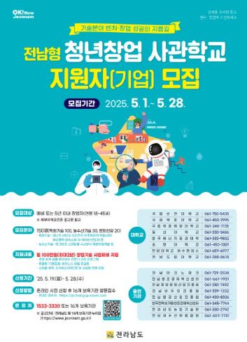 자세한 사항은 전남도 누리집에서 확인하거나 벤처창업 종합안내창구로 문의하면 된다.