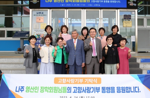 전라남도 나주시는 최근 영산인 장학회 회원들이 고향에 대한 깊은 애정을 담아 고향사랑기부금 2500만 원을 기탁했다고 28일 밝혔다.