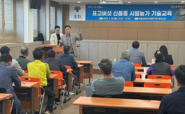 이번 교육은 장흥군버섯산업연구원에서 2025년 흥화표고 생산실적 및 특화 재배기술에 대해 교육하고, 장흥군농업기술센터에서 표고버섯 시설재배 보급형 스마트팜 지원 시범사업에 대한 설명으로 진행됐다.