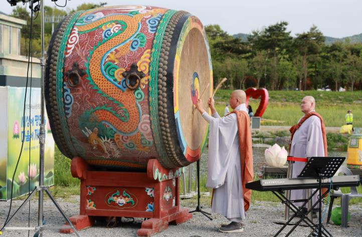 17시부터 시작된 행사 1부는 ▲법고 ▲삼귀의례 ▲반야심경 ▲봉축가 ▲육법공양 ▲헌화 및 관불의식 ▲봉축사 및 봉축법어 등의 순으로 진행됐다.