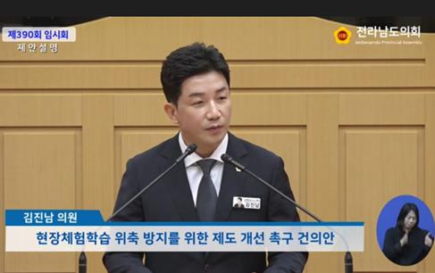 마지막으로 김 의원은 “지도교사의 책임은 크지만, 보호는 턱없이 부족한 현실 속에서 설렘으로 시작돼야 할 체험학습이 위축되고 있다”며 “이 문제의 본질을 직시하고 전라남도의회 60명 전원이 뜻을 모은 이번 건의안을 계기로, 정부가 책임있는 제도 개선에 나서길 강력히 촉구한다”고 말했다.