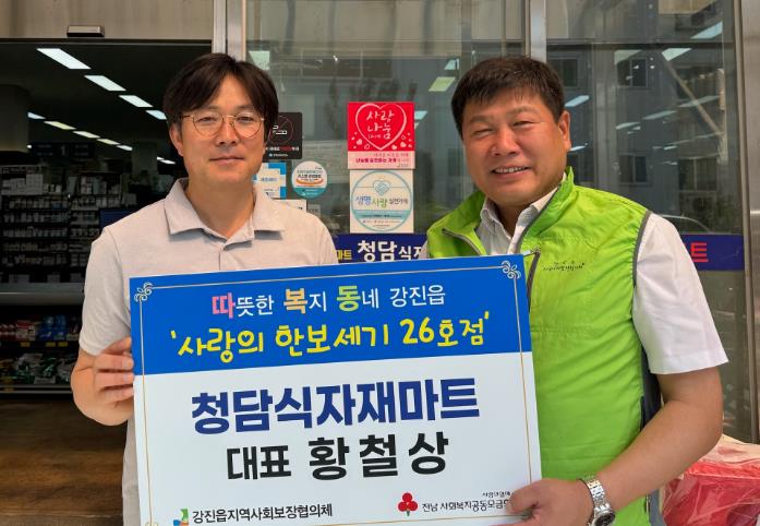 임창복 강진읍장은 “지역사회에 먼저 손을 내밀어 준 데 깊은 감사를 전한다 청담식자재마트의 나눔이 지역과 함께하는 좋은 본보기가 되길 바랍니다”라며 “뜻깊은 시작을 계기로 더 많은 소상공인과 함께 지역공동체의 따뜻한 나눔 문화를 만들어가겠습니다”고 말했다.